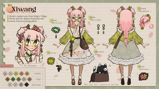 genshin: 4* dendro catalyst support. works at bubu pharmacy when not running around teyvat. x xiao